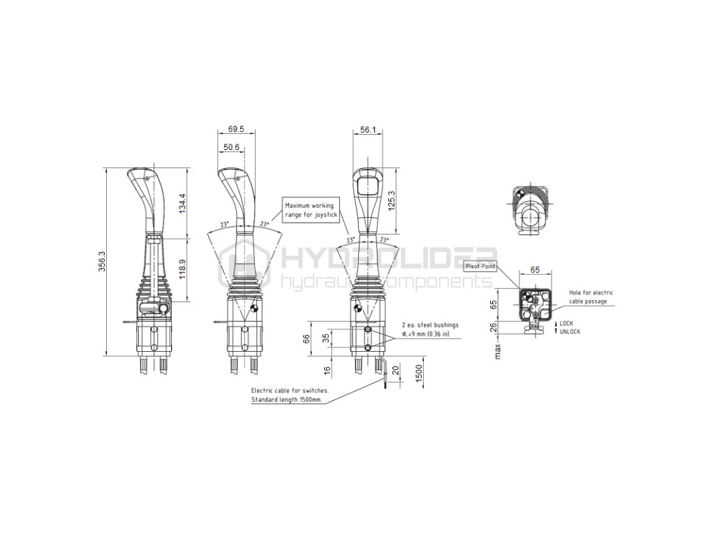 2-sekźnˇ hydraulick sada 40L/min: Joystick bez tlaźˇtka + 2x 1,5m kabel + 2sek. rozdŘlovaź 40L