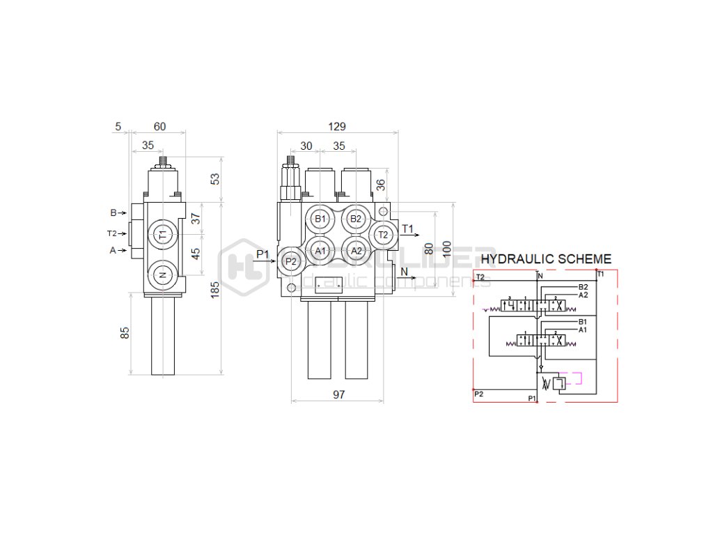 Uzpůsobeno pro traktory a stroje s otevřeným hydraulickým systémem. Otevřený systém se vyznačuje tím, že při nastartování motoru se aktivuje hydraulické čerpadlo a hydraulický rozdělovač, když se nepoužívá, volně proudí olej z čerpadla směrem k nádrži. Čerpadlo běží volně a olej cirkuluje mezi čerpadlem rozdělovače a nádrží pod nízkým tlakem. |