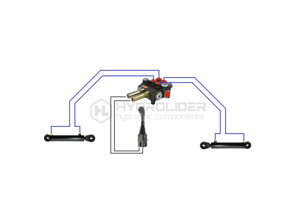 2-sekźnˇ hydraulick sada 80L/min: Joystick bez tlaźˇtka + 2x Kabel 1m + 2sek. rozdŘlovaź 80L
