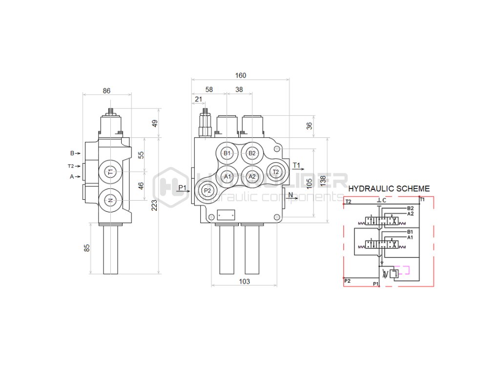 | Aplikace: | Uzpůsobeno pro traktory a stroje s otevřeným hydraulickým systémem. Otevřený systém se vyznačuje tím, že při nastartování motoru se aktivuje hydraulické čerpadlo a hydraulický rozdělovač, když se nepoužívá, volně proudí olej z čerpadla směrem k nádrži. Čerpadlo běží volně a olej cirkuluje mezi čerpadlem rozdělovače a nádrží pod nízkým tlakem. |