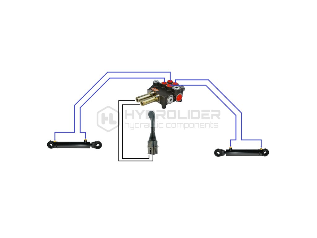 2-sekźnˇ hydraulick sada: 80L rozdŘlovaź s plovoucˇ sekcˇ + joystick bez tlaźˇtek + dva 3m kabely