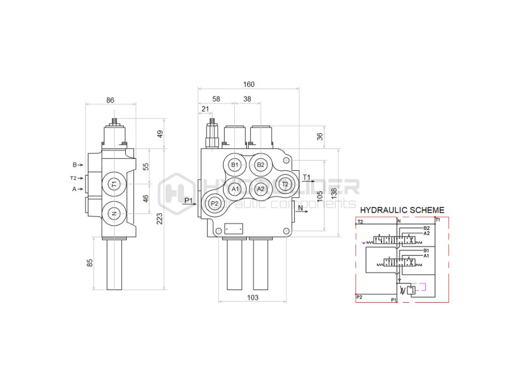 Uzpůsobeno pro traktory a stroje s otevřeným hydraulickým systémem. Otevřený systém se vyznačuje tím, že při nastartování motoru se aktivuje hydraulické čerpadlo a hydraulický rozdělovač, když se nepoužívá, volně proudí olej z čerpadla směrem k nádrži. Čerpadlo běží volně a olej cirkuluje mezi čerpadlem rozdělovače a nádrží pod nízkým tlakem. Perfektní pro ovládání dvou sekcí v zatáčce, zvedání rámu a náklonu lopaty, u traktorů, kde účinnost hydraulického čerpadla nepřesahuje 80L/min. Plovoucí sekci, neboli volný odtok, využívá mj. i pro sněhové pluhy nebo v čelních nakladačích TUR. Způsobuje volný pohyb pístnice v hydraulických válcích, chrání před poškozením prvky, které jsou v přímém kontaktu se zemí, např. list pluhu. |
