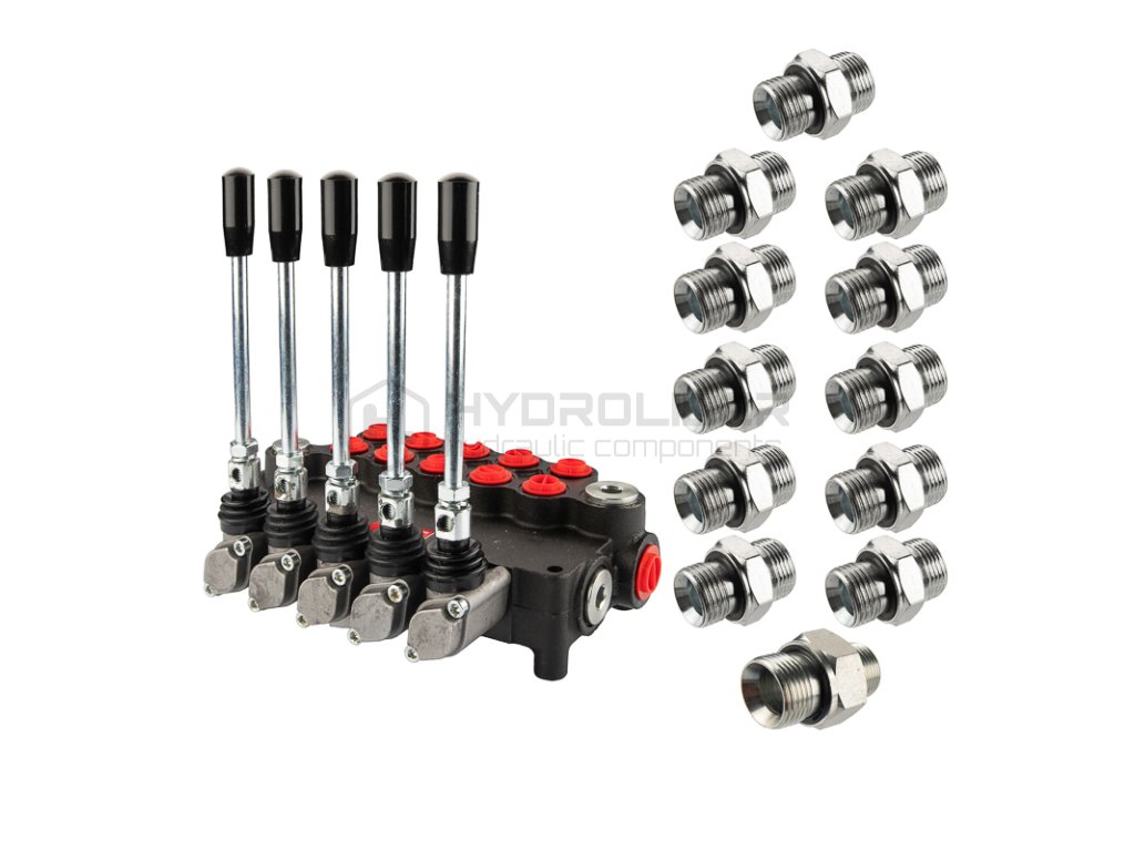 5dílný hydraulický rozdělovač 80 l/min 5P80 s 27/22 přípojkami Hydrolider