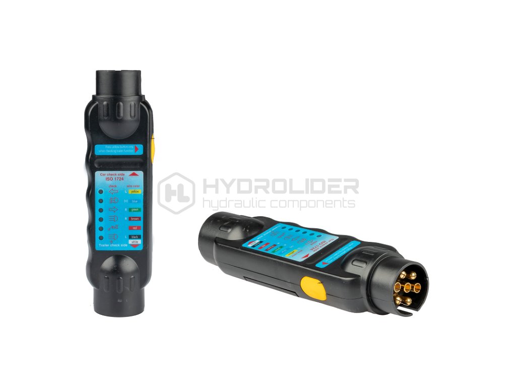| Aplikace: | elektronický tester pro 7pólové zásuvky v přívěsech, zemědělských, stavebních a dopravních vozidlech. Bezdrátové zařízení umožňuje snadno identifikovat problémy s elektrikou a nesprávnou funkcí osvětlení v přívěsu. |