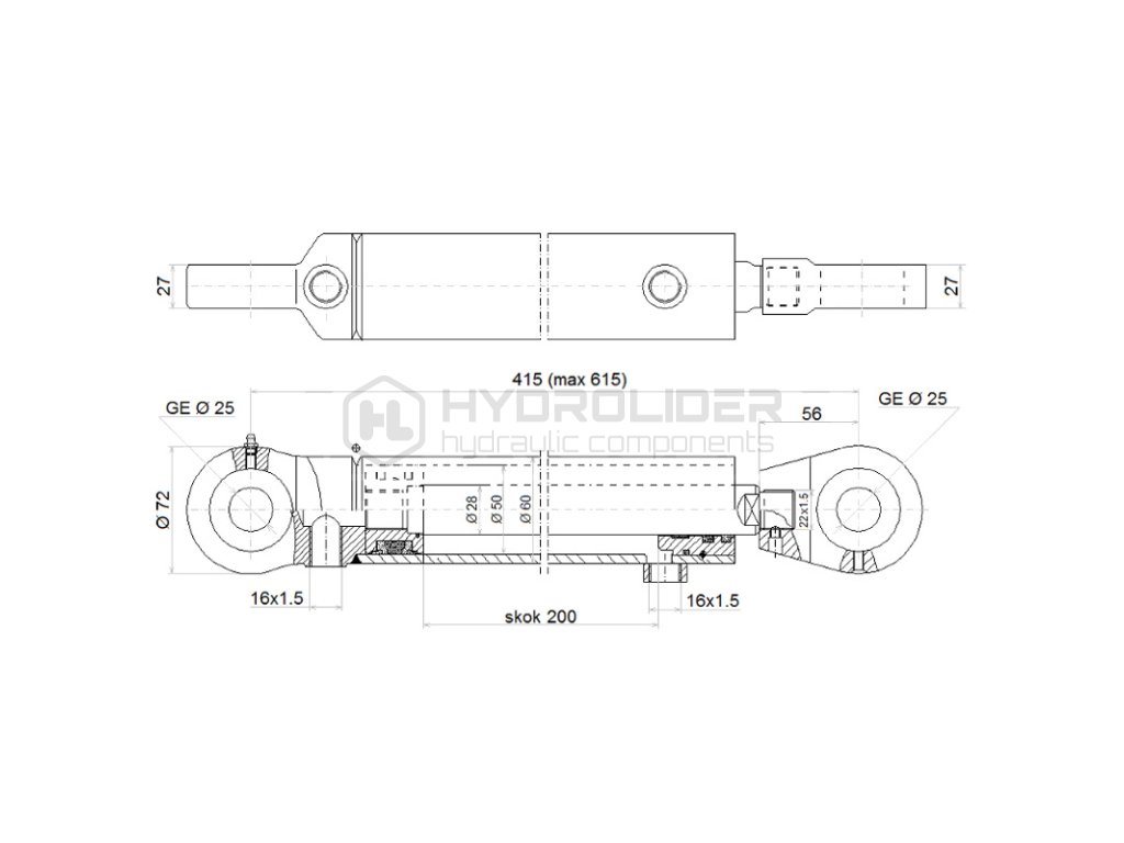 Dvojźinně hydraulickě v lec d‚lka: 415mm zdvih: 200mm kompletnˇ s pojistněm ventilem lock