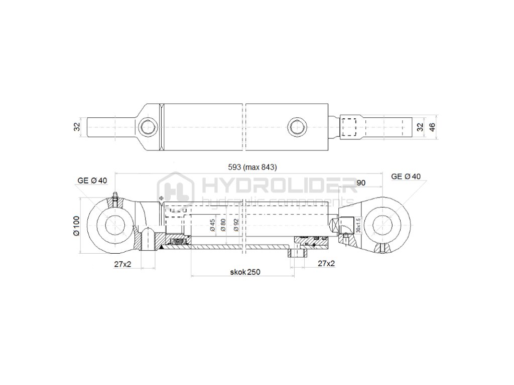 Dvojźinně hydraulickě v lec d‚lka: 593 mm zdvih: 250mm CJ2F-80/45/250 s uchycenˇm U40