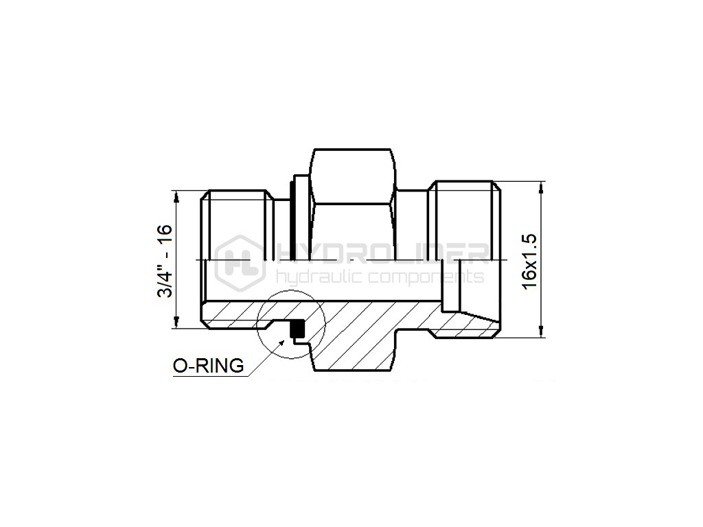 Hydraulick pýˇpojka rovn UNF 3/4" - 16 - M16x1.5 ED PBB