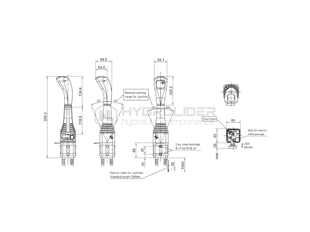 Hydraulick sada 2-sekźnˇ joystick 1 tlaźˇtko + 2x kabel 3m + 2-sekźnˇ dŘliź 120l