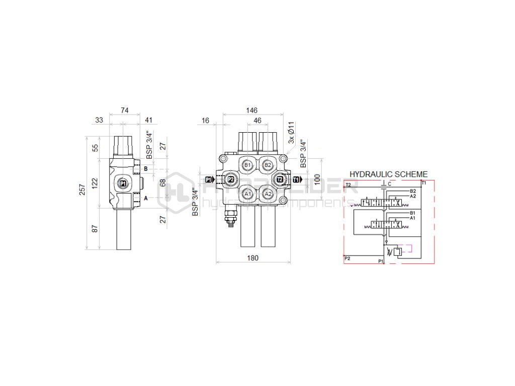 Hydraulick sada 2-sekźnˇ joystick bez tlaźˇtka + 2x 2m vedenˇ + 2sek. rozdŘlovaź 120l (1x plovoucˇ)