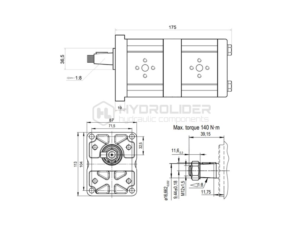 Hydraulické zubové čerpadlo Hydrosila pravé 2sekční skupina 2 objem: 14/12 cm3/ot. průtok (1500 ot.): 21/18 l/min