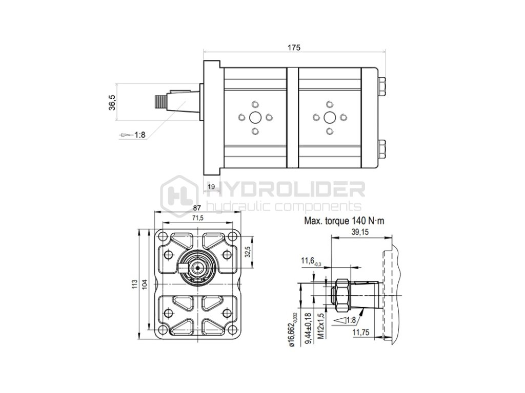 Hydraulické zubové čerpadlo Hydrosila pravé 2sekční skupina 2 objem: 14/14 cm3/ot. průtok (1500 ot.): 21/21 l/min