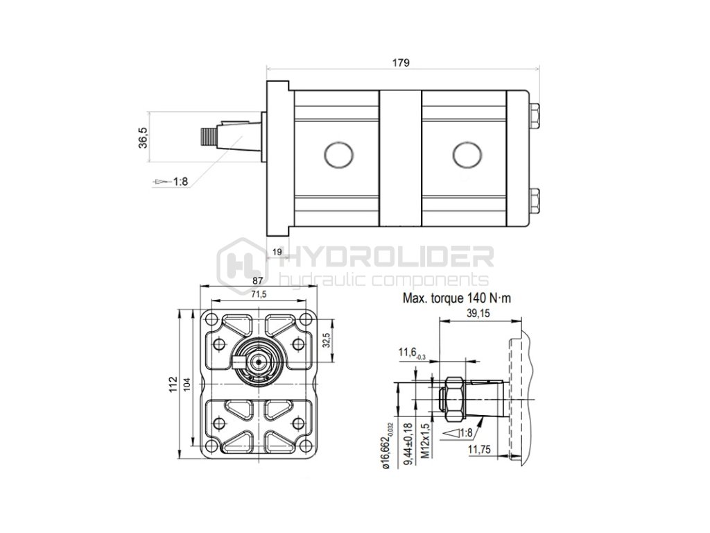 Hydraulické zubové čerpadlo Hydrosila pravé 2sekční skupina 2 objem: 16/14 cm3/ot. průtok (1500 ot.): 24/21 l/min