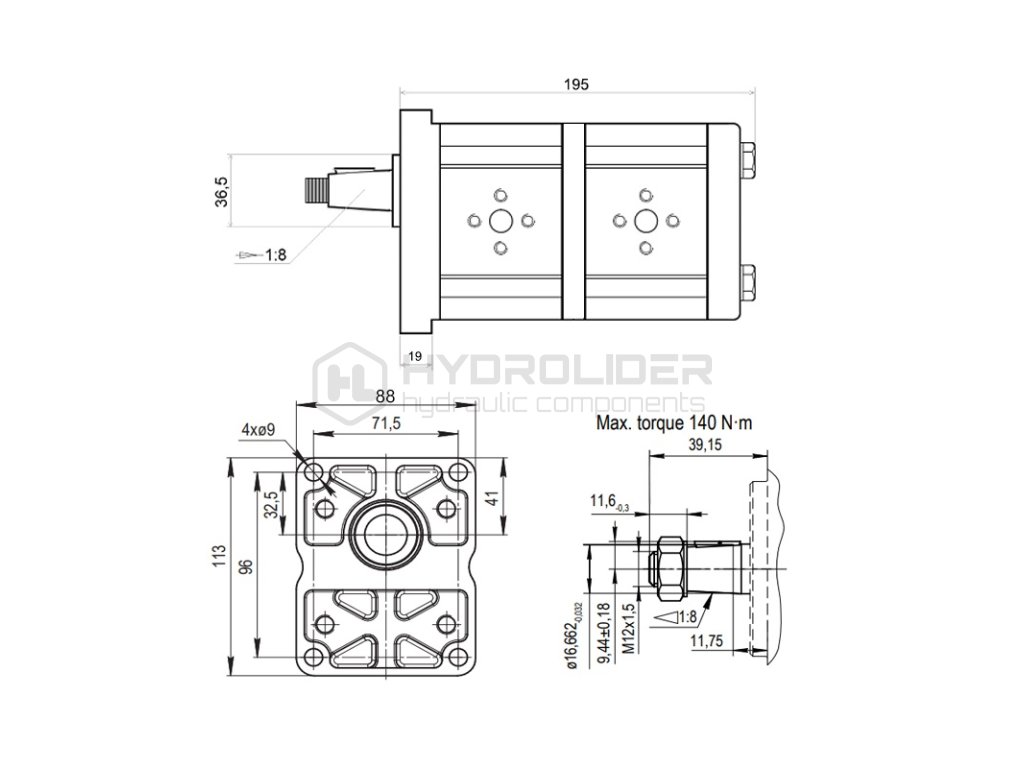 Hydraulické zubové čerpadlo Hydrosila pravé 2sekční skupina 2 objem: 20/20 cm3/ot. průtok (1500 ot.): 30/30 l/min