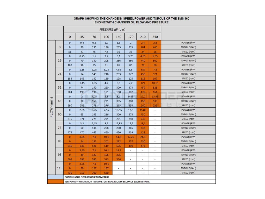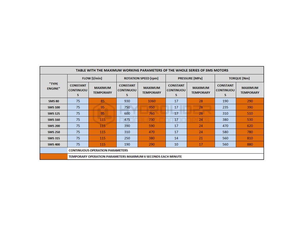 Je široce používán v hydraulických systémech v zemědělství, stavebnictví a průmyslu. Motory se stejnými rozměry, v závislosti na kvalitě konstrukce, původu a výrobci, se objevují pod různými symboly, např..: OMS, BMS, SMS, OMSS, OMZS, a jiné. Hydromotor SMS 160 je určen především pro práci v různých typech zemědělské a průmyslové techniky. V systémech, kde je vysoký požadavek na výkon a točivý moment.