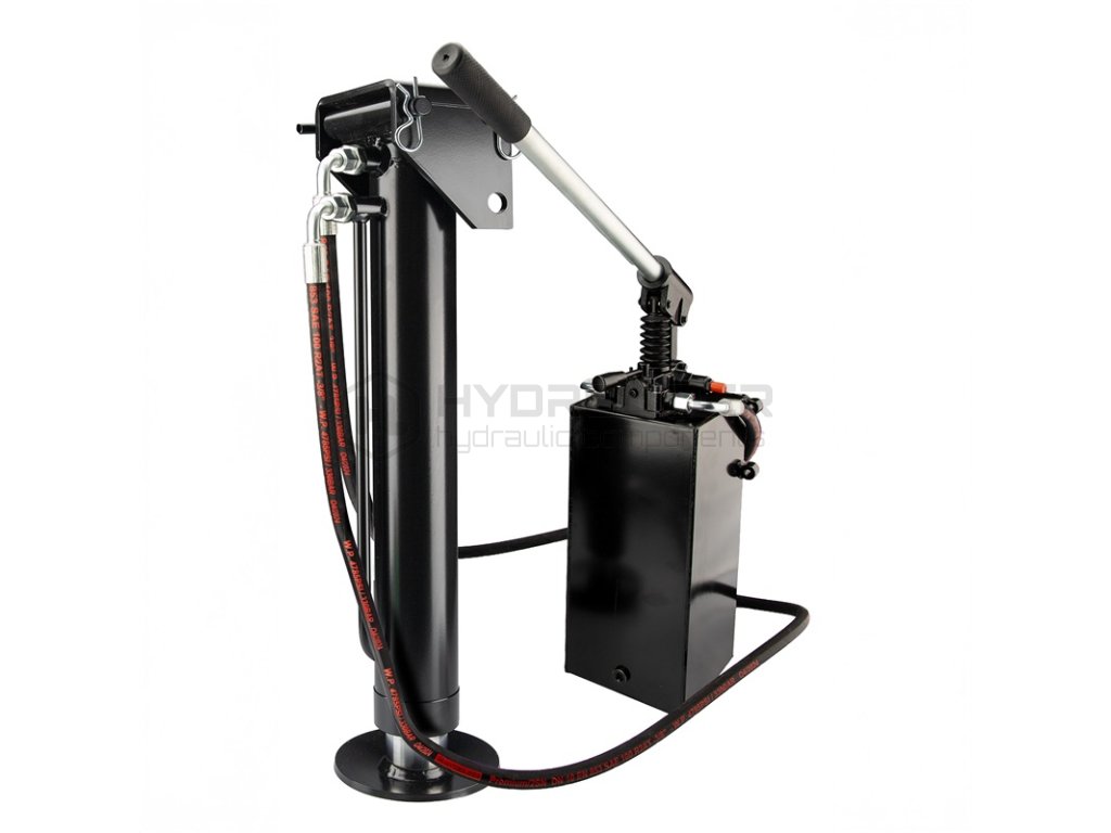 Hydraulický válec s podpěrou nohy, dvojčinný válec, délka: 440 mm, zdvih 500 mm, CJ2F-70/60/250, délka: 440 mm + montáž, součástí balení je ruční čerpadlo 45 cm3, olejová nádrž 5 l a hydraulická hadice 2x 2 m DN10 2SN 3/8"