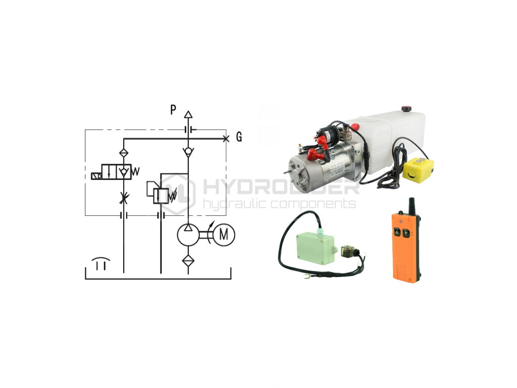 Hydraulika pro skl pŘcˇ pýˇvŘs. Sada pro skl pŘnˇ: 12V zdroj s bezdr tověm ovl d nˇm + hydraulickě v lec se zdvihem 1000mm, nosnost a§ 12T