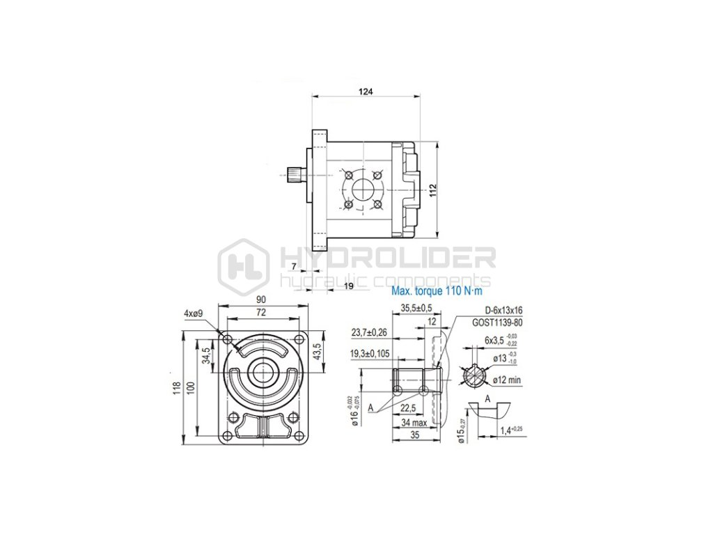Hydrosila levé jednosekční hydraulické čerpadlo s ozubeným kolem, skupina 2, objem: 22 cm3/ot., průtok (1500 ot.): 33 l/min