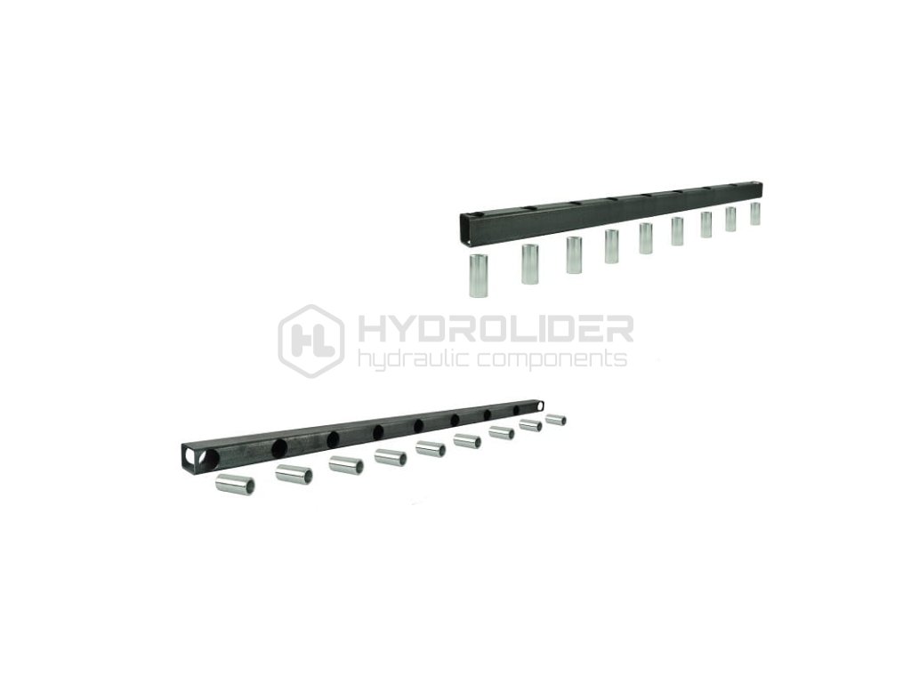 rozměry 80 mm x 60 mm, délka 1590 mm, tloušťka stěny 5 mm a otvory o průměru 50 mm Devět pouzdra pro hroty ohnuté 680 mm, lisované z tyče délka 110 mm a průměru 49 mm Devět pouzdra pro hroty rovné 1100 mm, lisované z tyče délka 115 mm a průměru 49 mm |