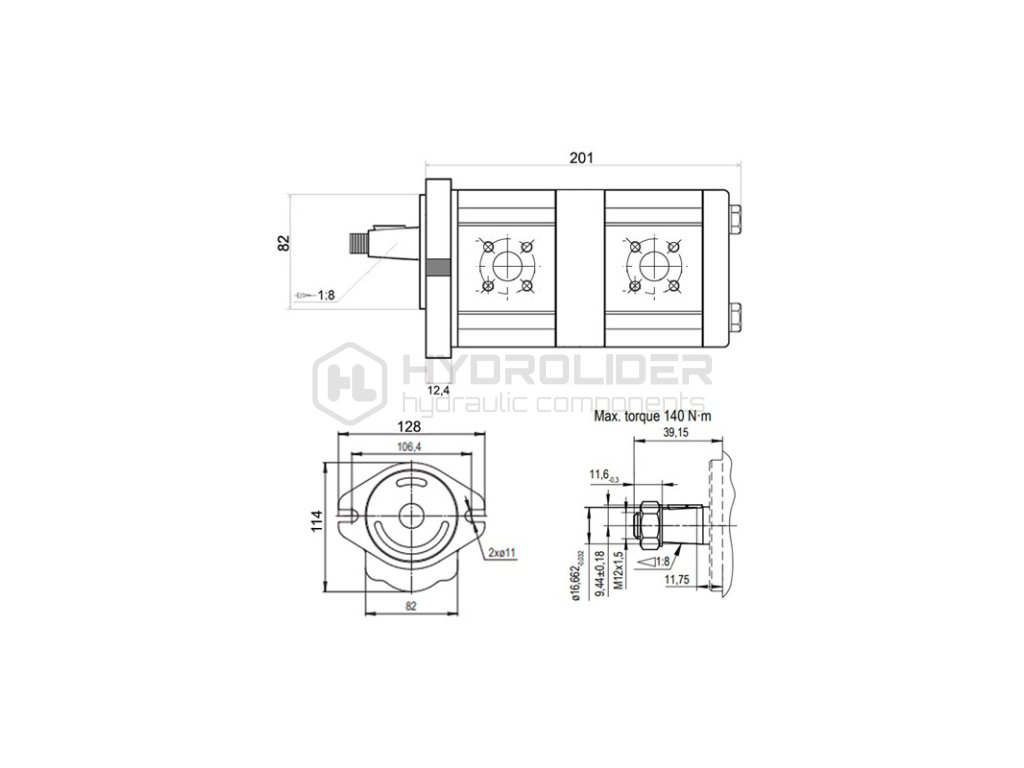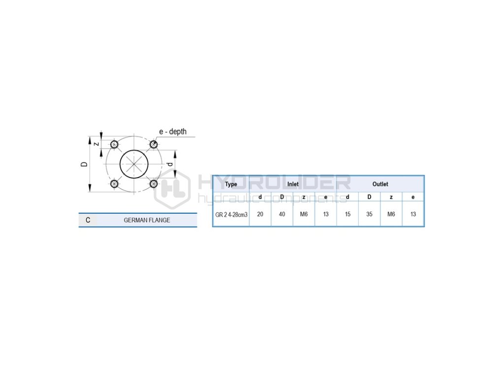 Levé dvousekční hydraulické čerpadlo Hydrosila s ozubeným kolem, skupina 2, objem: 16/11,3 cm3/ot., průtok (1500 ot.): 24/16,1 l/min