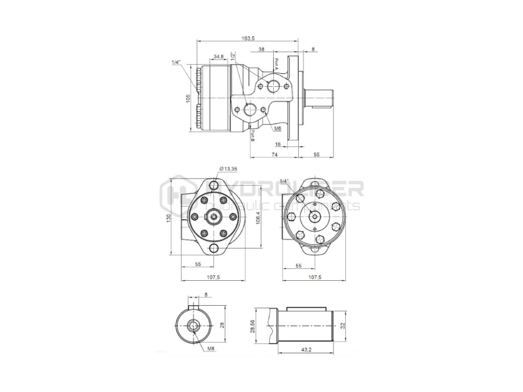 MR hydromotor, absorpce: 200 cm3/ot, rychlost: 300 ot/min, hýˇdel: 32 mm