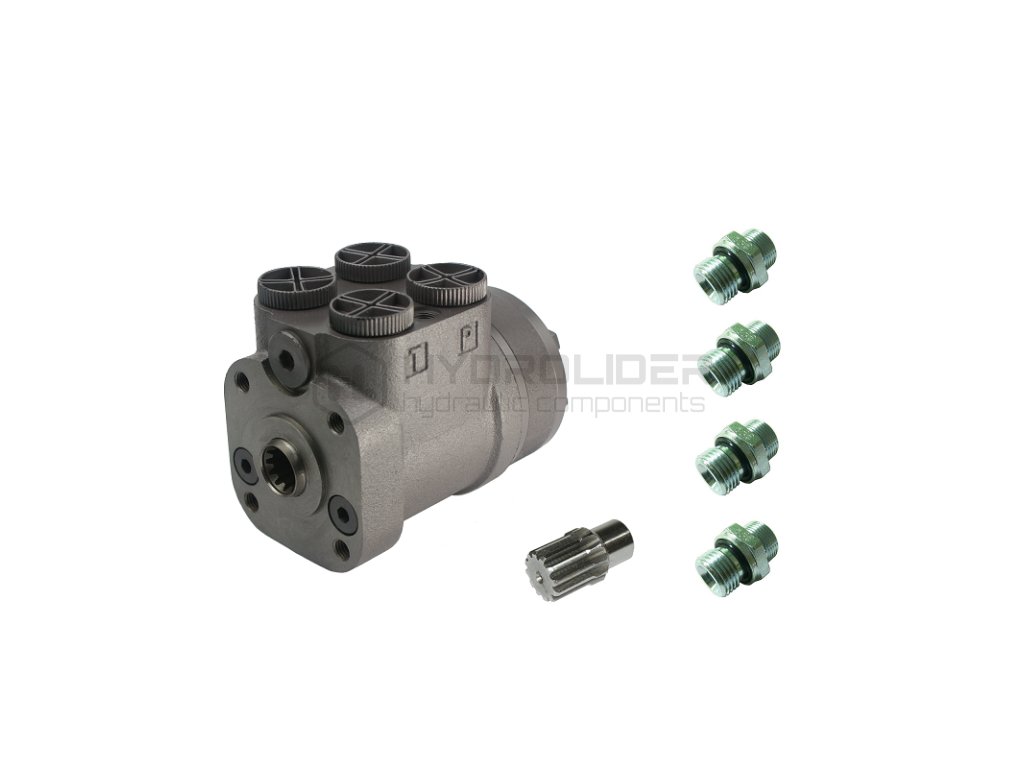 Připojení: P, T, A, B vnitřní závity [BSP]: 1/2" Držák sloupku řídítek: 4x šroub M10 - 16mm Nastavení ventily: přepad 160 bar, šok 240bar Objem: 125cm3/ot. Průtok: 10 - 14L/min. Symboly katalogu: OSPC-125-ON ; OSPC125ON ; 150N2151 Celková délka hřídele: 40mm Hřídele volantu má: 12 frézy. Hladká šířka hrotu: 17mm Připojení: 1/2"-M18x1.5 |