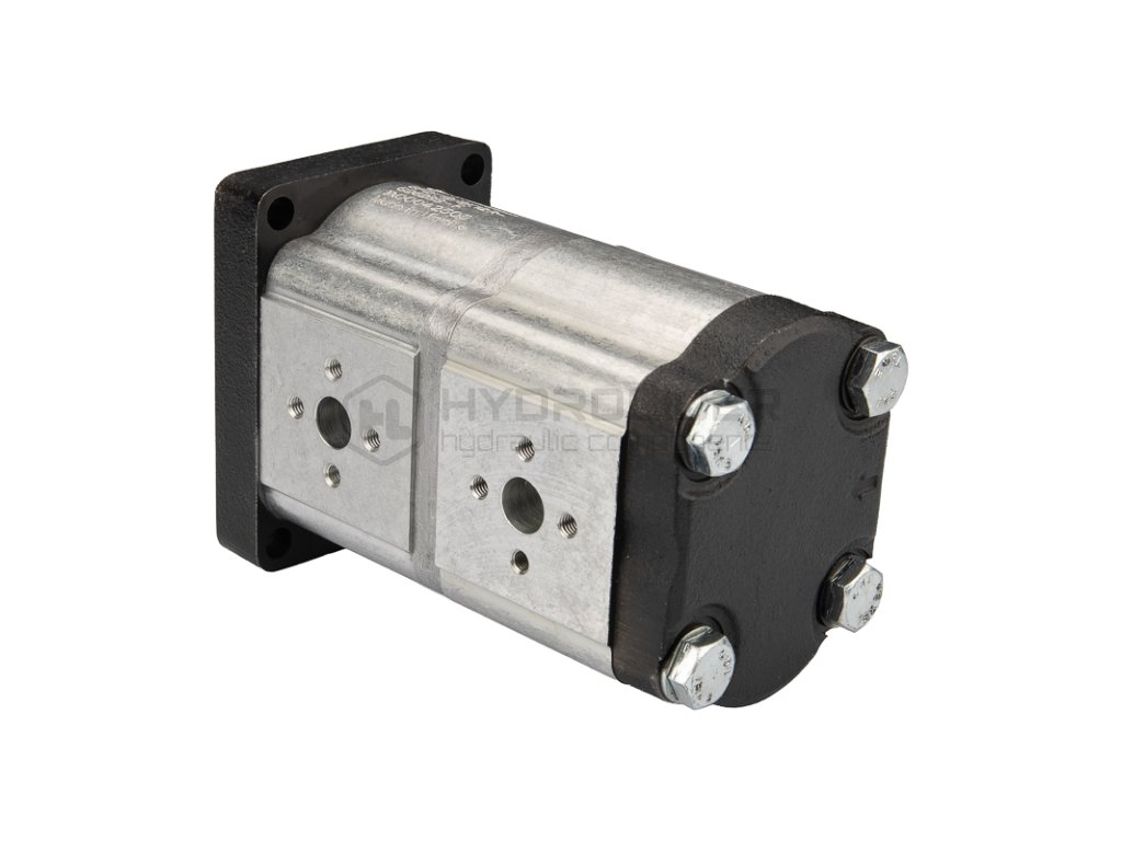 Pravé dvousekční hydraulické čerpadlo Hydrosila se zubovým pohonem, skupina 2, objem: 12/12 cm3/ot., účinnost (1500 ot.): 18/18 l/min