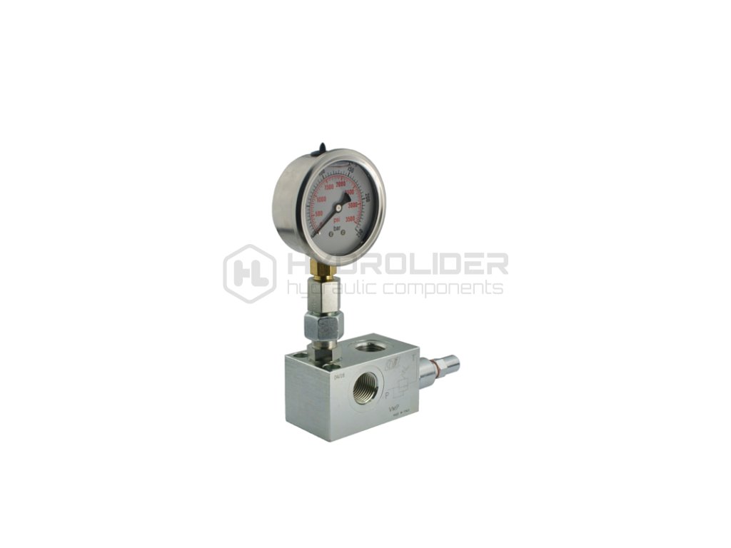 Pýepadově pojistně ventil VMP 3/4' seýiditelně 80-300 bar… s manometrem