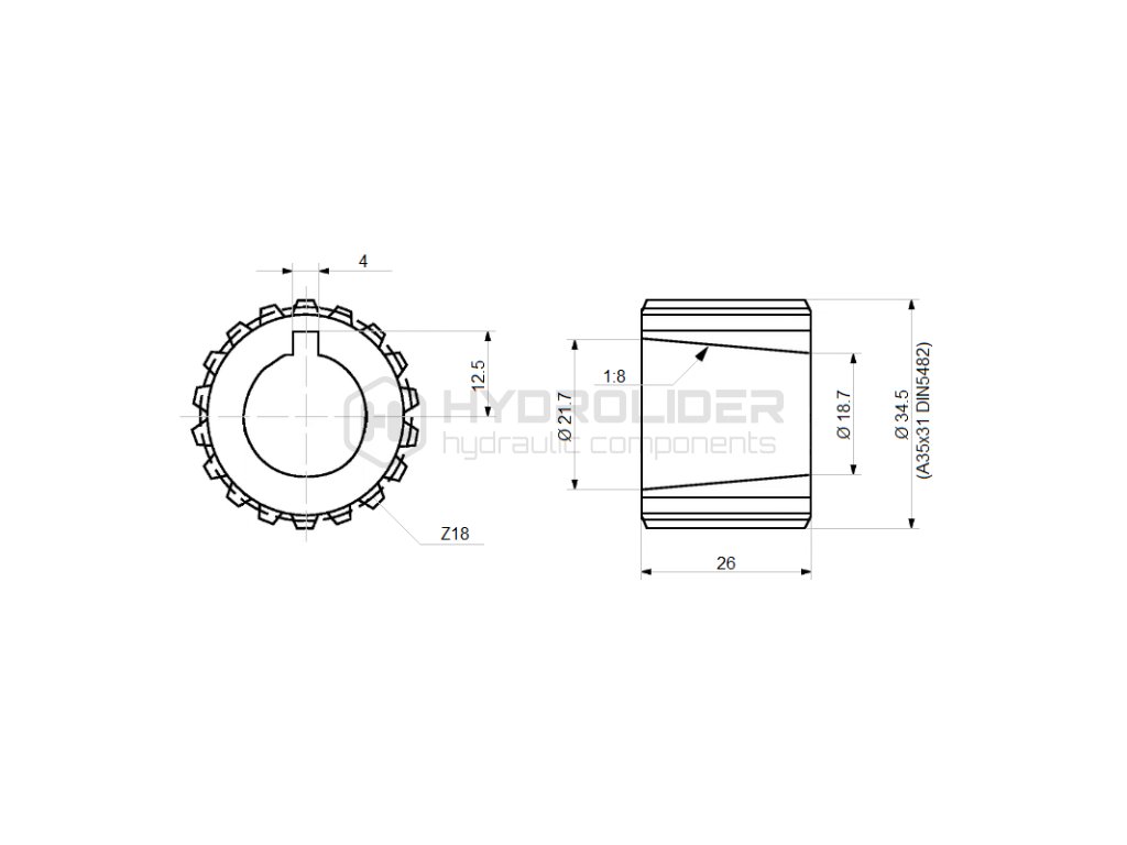 Spojka spojuje hydraulické čerpadlo GR3 s hřídelí evropského typu 1:8 s podpěrou ložiska s 18-ti frézovým nástavcem Z18 A35x31 DIN 5482. Ložisková podpěra (ložisková podpěra), která je rovněž dostupná v nabídce, chrání hřídel motoru nebo čerpadla před bočním a excentrickým namáháním, výrazně prodlužuje životnost součásti a chrání před netěsností hřídele. Umožňuje řídit těžké prvky s nestabilním těžištěm.