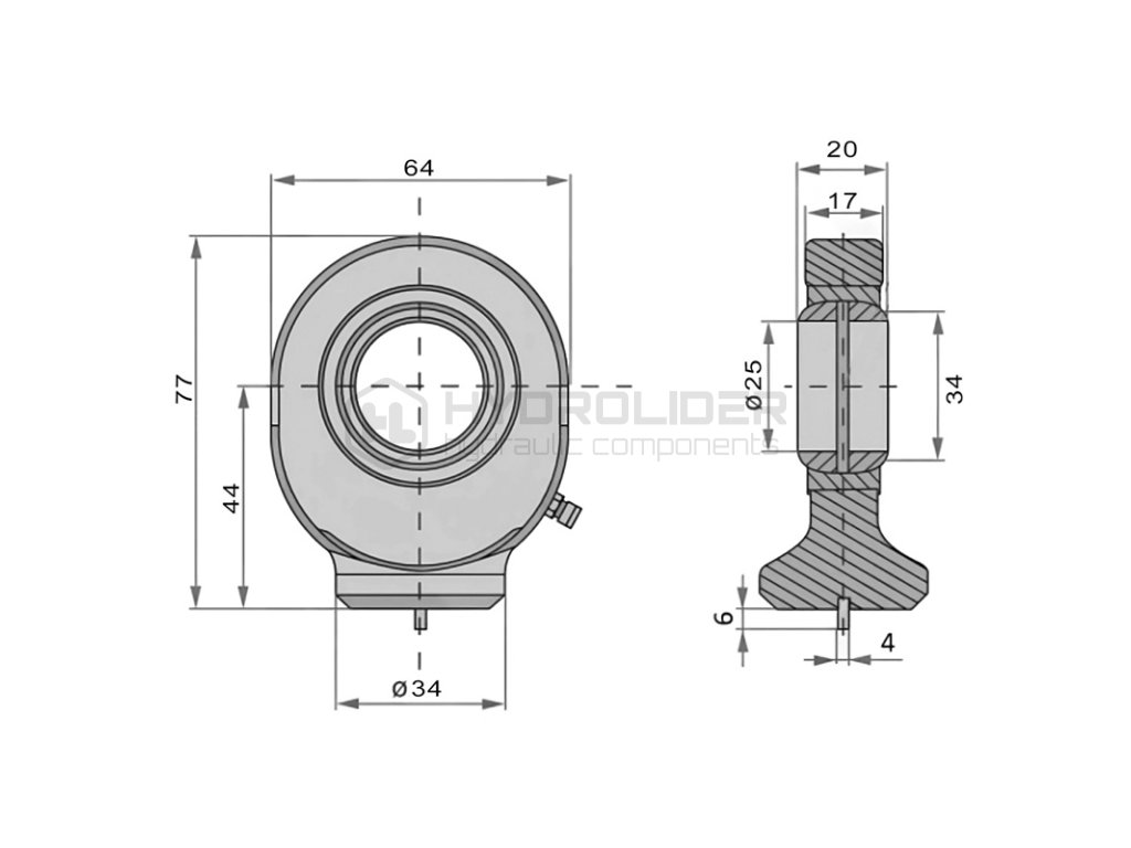 Očko přivařené k pístní tyči válce. Očko s ložiskem.